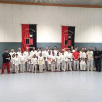 Nach dem Lehrgang fanden die Kyu und Dan Prüfungen statt. Gezeigt werden musste Kihon aus den Katas, dann Kata und Bunkai und im Anschluss noch Kobudo.