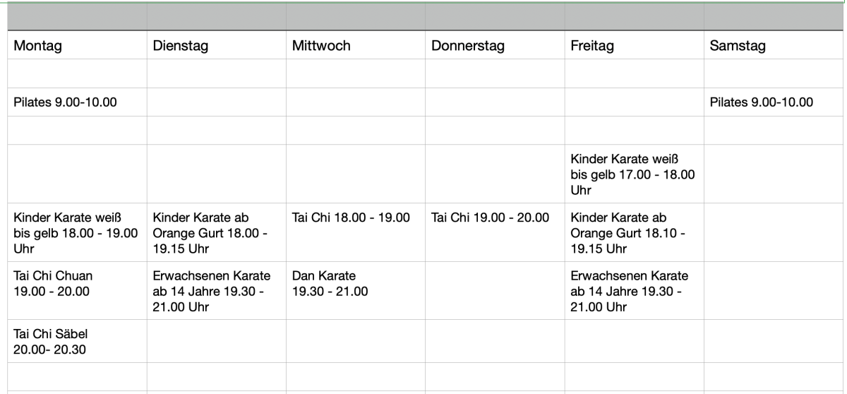 Der Wochenplan ist gültig ab dem 01. Januar 2025 (Änderungen vorbehalten)