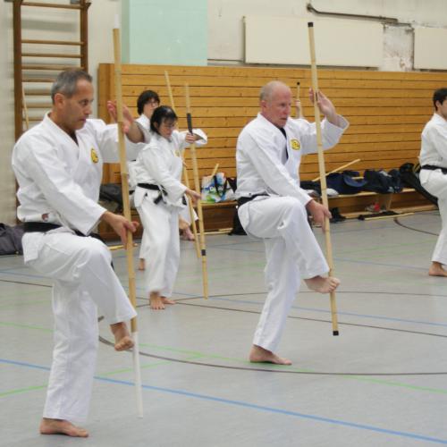 Neben Partnerübungen werden die alten Katas intensiv gelehrt und geübt. Das Kobudo Training ist Bestandteil des Shorinji Ryu. Es wird nicht seperat unterrichtet und ist geeignet für Jugendliche ab 12 Jahren und Erwachsene.