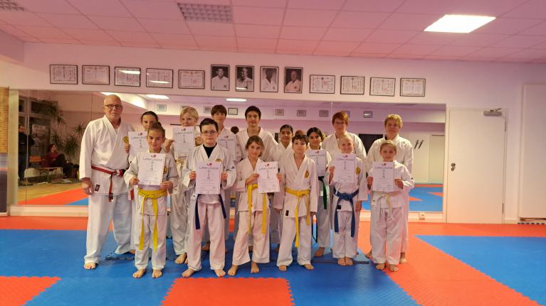 Sowohl die Kinder als auch die Erwachsenen waren gut vorbereitet und gaben hochkonzentriert ihr Bestes. Und so war die Freude und Erleichterung groß, als Sensei Jürgen Fischer die Ergebnisse verkündete. Fast alle hatten die Prüfung bestanden und durften mit viel Lob, wohlwollenden Hinweisen, neuen DKV-Urkunden und einem neuen Gürtel stolz und glücklich den Heimweg antreten.