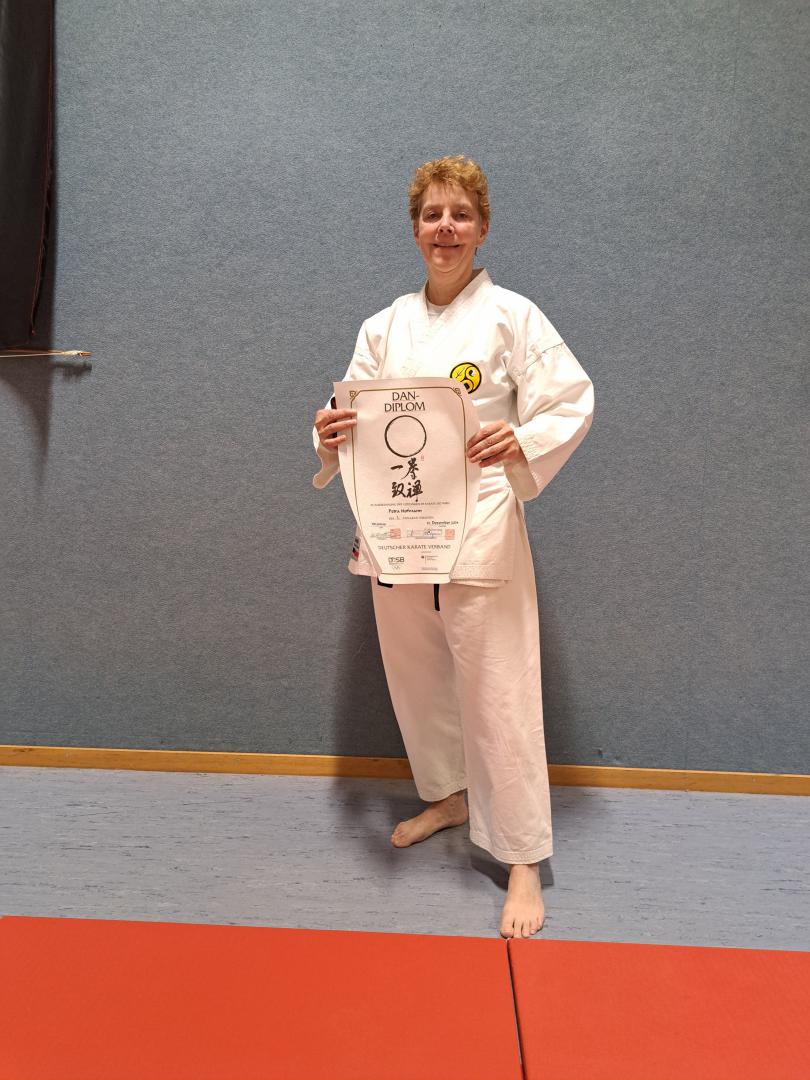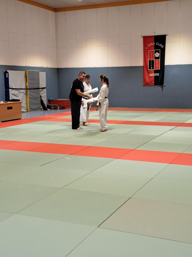 Mia Tremper erhielt mit 14 Jahren den Junior Dan, Petra Hofmann den 2. Dan. Vielen Dank an alle Helfer die mitgefahren sind und als Partner bei der Prüfung zur Verfügung standen.