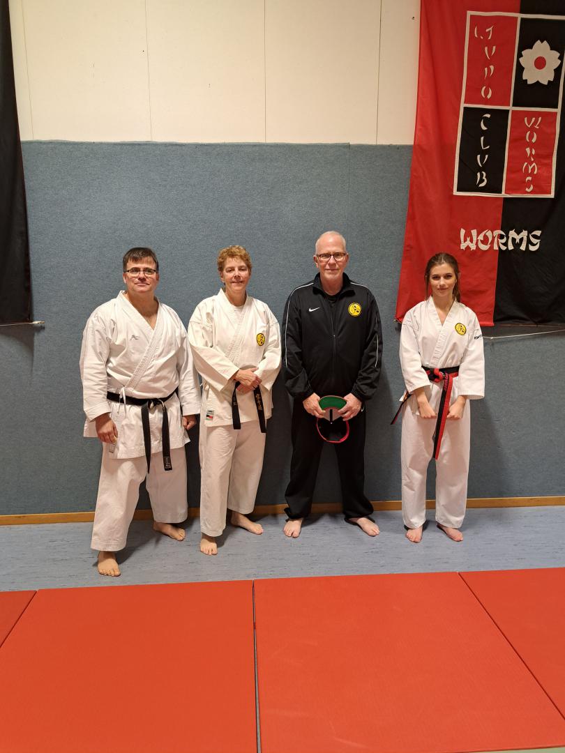 Am 4. Dezember nahmen wir an den Schwarzgurtprüfungen in Trier teil. Es wurden insgesamt 8 Teilnehmer geprüft. Zwei auf 6. Dan und alle anderen auf 1. Dan. Unsere Teilnehmer starteten um 13.30 Uhr unter 2G+ Regeln. Alle mussten getetstet sein. Zuerst mussten sie sich der Prüfungskommission, deren Vorsitz Shihan Bill Marsh hatte, vorstellen. Gemeinsam mit den 6 Teilnehmern wurde Kihon praktiziert, zuerst mit Einzeltechniken, dann mit Kombinationen. In drei Gruppen aufgeteilt ging es weiter zu Kumite Techniken mit Partner. Danach wurde jeder einzeln geprüft und musste seine Katas, die für Shodan vorgesehen sind vorführen. Danach kamen die Kobudo Katas an die Reihe. Auf weitere Partner Übungen wurde wegen der Corona Lage verzichtet. Nach längerem beratschlagen wurde unseren beiden Prüflingen mitgeteilt, dass sie bestanden hatten. Nach einem langen Tag fuhren wir um 18.00 Uhr wieder nach Hause. Ich bin sehr stolz auf die gezeigten Leistungen und freue mich auf die künftige gemeinsame Arbeit mit den neuen Schwarzgurten. Weitere werden bald folgen.